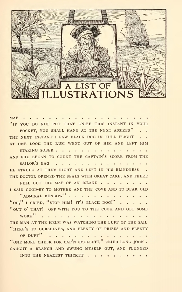 “Well,” said he, “my mate Bill would be called the captain, as like as not. He has a cut on one cheek and a mighty pleasant way with him, particularly in drink, has my mate Bill. We’ll put it, for argument like, that your captain has a cut on one cheek—and we’ll put it, if you like, that that cheek’s the right one. Ah, well! I told you. Now, is my mate Bill in this here house?”