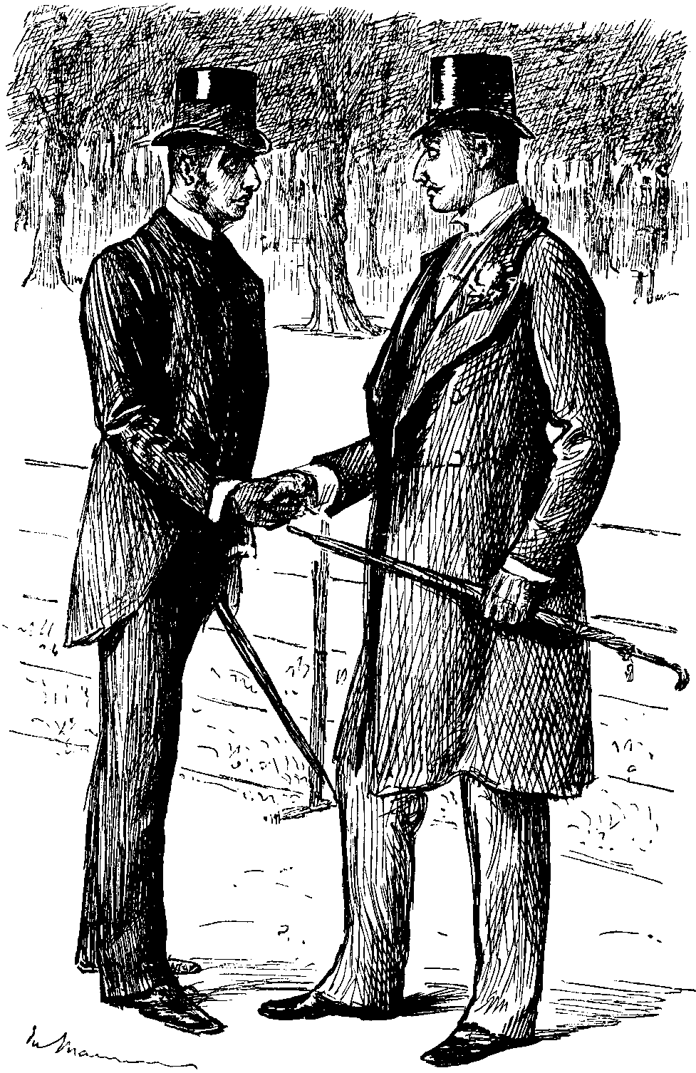 Frank. "AH—WELL—FACT IS, I TRIED ON SIXTEEN OR SEVENTEEN HAT-BANDS, AND COULDN'T GET ONE TO SUIT ME!"