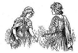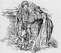 Now, in Athens, where they lived, there was a wicked law, by which any girl who refused to marry according to her father's wishes, might be put to death. Hermia's father was so angry with her for refusing to do as he wished, that he actually brought her before the Duke of Athens to ask that she might be killed, if she still refused to obey him. The Duke gave her four days to think about it, and, at the end of that time, if she still refused to marry Demetrius, she would have to die.