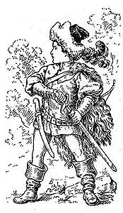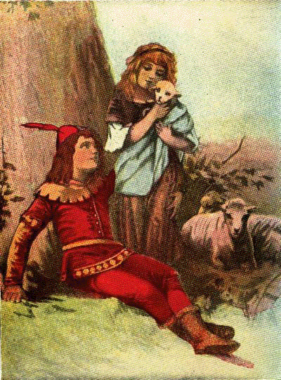 Then Oberon called his favorite fairy, Puck. Puck was the spirit of mischief. He used to slip into the dairies and take the cream away, and get into the churn so that the butter would not come, and turn the beer sour, and lead people out of their way on dark nights and then laugh at them, and tumble people's stools from under them when they were going to sit down, and upset their hot ale over their chins when they were going to drink.