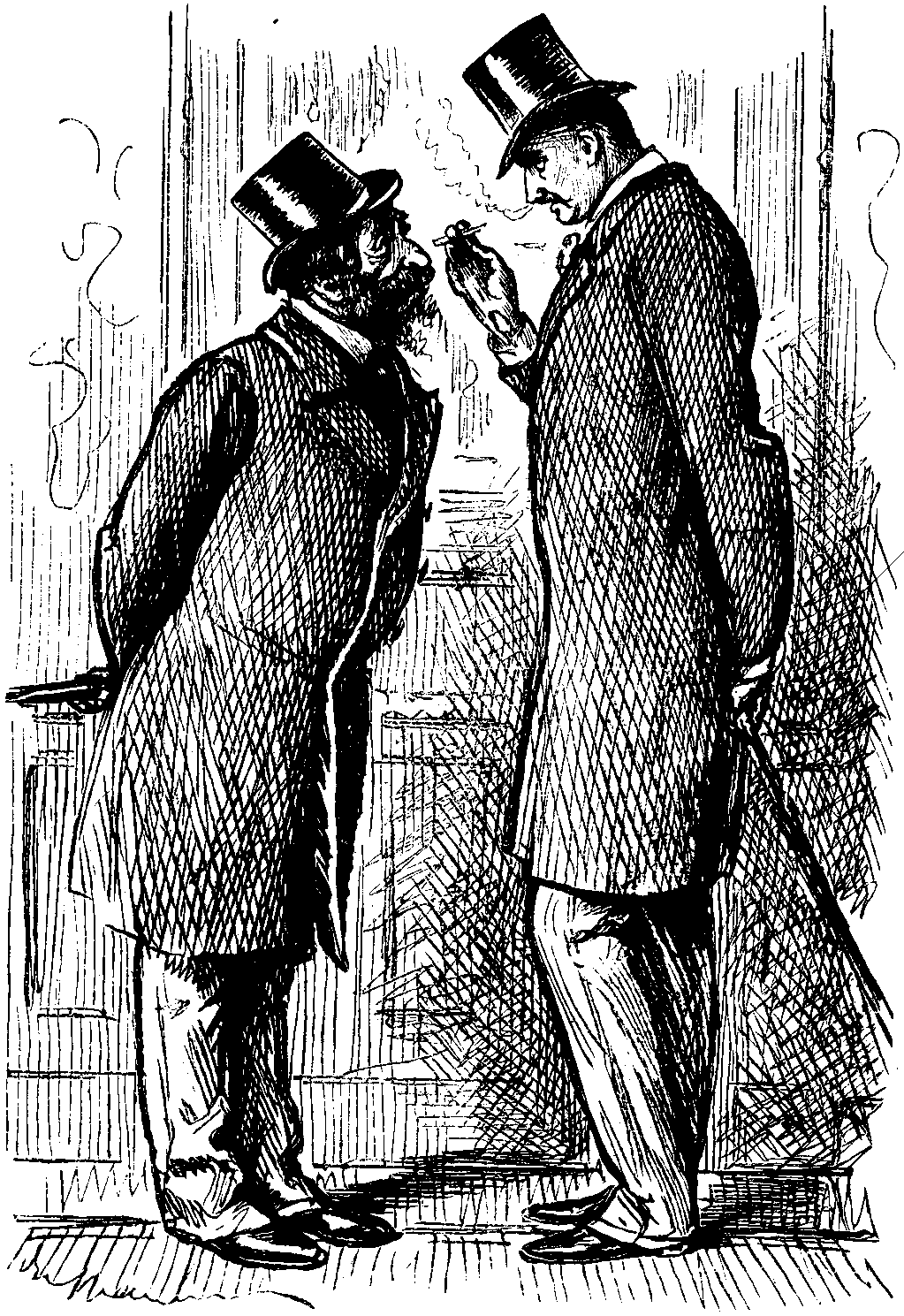 The Conn. My dear fellow, as if it was possible to mistake his touch. (Thinks from his friend's expression, that he had better hedge.) Unless it's a Reynolds. Of course it might be a Sir Joshua, their manner at one period was very much alike—yes, it might be a Reynolds, certainly.