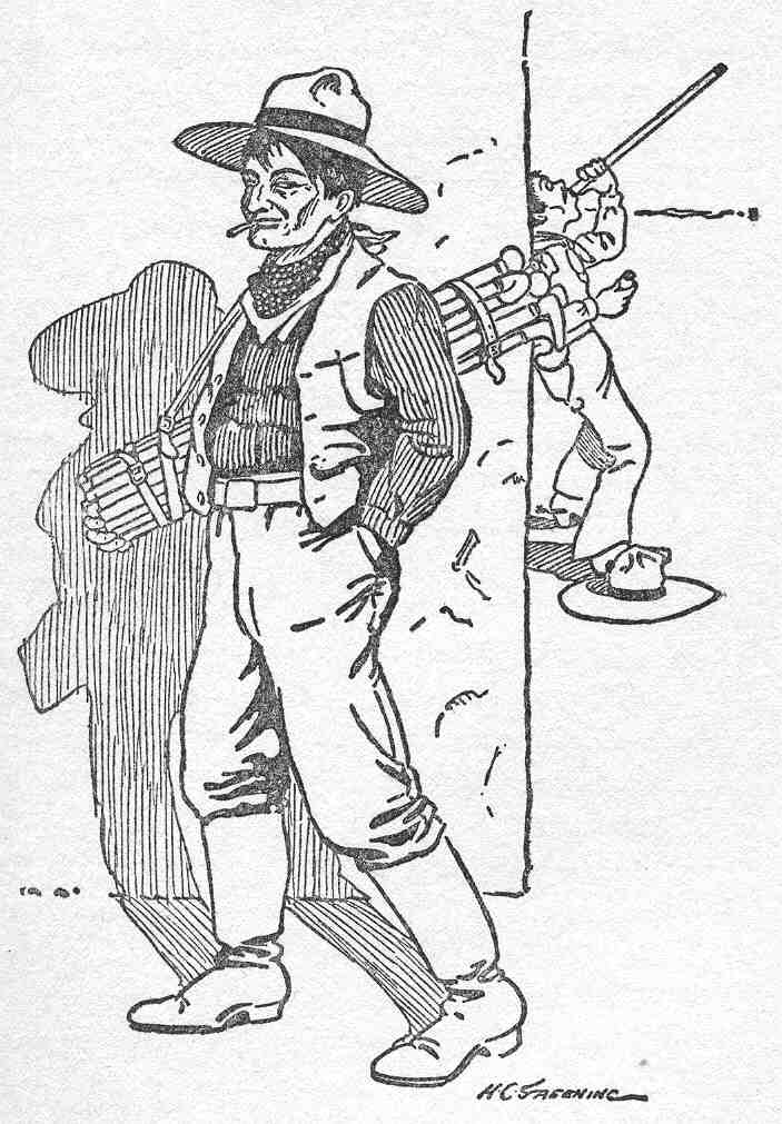 "'Pardner,' says I, 'what has happened? This morning there was hectic gaiety afoot; and now it seems more like one of them ruined cities of Tyre and Siphon where the lone lizard crawls on the walls of the main port-cullis.'