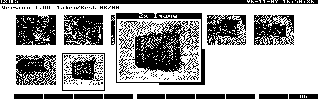 A program called LXDC lets you easily transfer images between the DC20 and the 100/200LX. Like QVCom above, LXDC lets you select images from a thumbnail display. You can also transfer all the images by one simple operation.