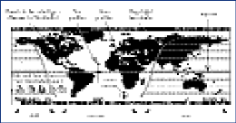 Sometimes I want to know the latitude and longitude coordinates for a particular location that may not be in the WorldTime database. I simply press F2 to Add a new location and then press F8 to start the map view with the cross hairs centered at 0.00 latitude and 0.00 longitude. I use the arrow keys to find my desired location and read the coordinates. If I press F10 the coordinates will be saved to a new record in the database or if I press F9 twice the process will be cancelled. I put "???" in the City field of the new record for reasons that will soon become apparent.