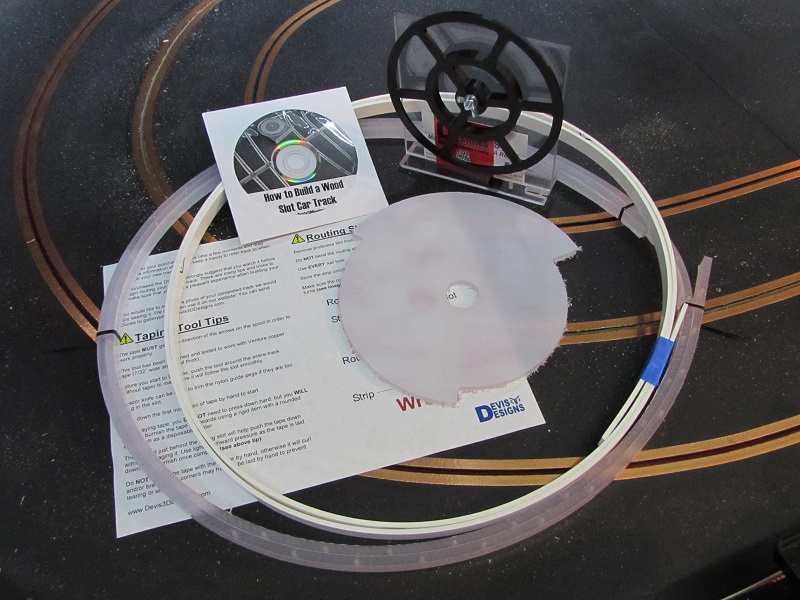 This kit includes the Routing Kit (Routing Strip, Routing Guide, Router Base Plate), Taping Tool (color may vary) and a FREE How-To DVD. All you need is a router, copper tape, and some nails! The Track Building Master Kit will have you building the race course of your dreams in no time! Each kit includes tip sheets to help with your project. Note that the strips will be shipped in a coil, but should be stored flat, so please open and uncoil the strip as soon as your package is delivered! Purchase of the DVD or the Master Kit includes access to a private YouTube video of this content. Your YouTube account email address will be required to provide access.