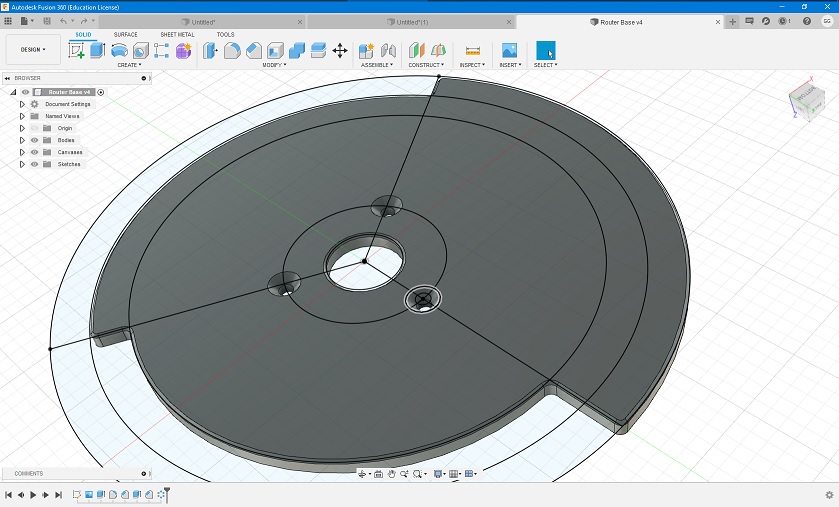 | Router Base PlateA 3D printed router base that allows for 3", 3.5", or 4" lane spacing (custom lane spacing available). Some modifications to the plate may be required to mate up to the router base being used. Uses your existing router hardware. Since these are 3D printed, I can "pre-drill" the holes for mounting it to your router. All I need is some information about your router, so that I can make sure the holes are the right size, and in the right places. As mentioned, I can easily customize the print for whatever lane spacing you want.