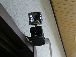 これを戸袋の上に取り付けて(左写真)映像の状態を見たのですが、明るい日差しの中でも“白飛び”が無くて、何とか使えそうでした。(左写真<クリック>)