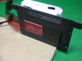 問題はフィルムの保持と光洩れを防ぐ枠(フレーム)なのですが、前に買ったフィルム・スキャン用の機材から、フィルム・ホルダを一時借用。(これだとフィルム周囲からの漏れ光は、かなり抑えられる)