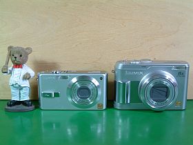 これまで、記事用の小物撮影に、DMC-LZ2(左写真の右側)を常用して来たのだが、近接撮影時にはどうしても樽歪みが残るし、のっぺら坊の面だとなかなか合焦し難いのが気になっていた。
