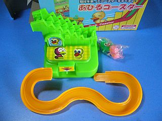 これはどうか?と見付けたのが、「あひるコースター」(図1)で、指でボタンを押し続けると、コトコトと小あひるが階段を登って行くものだ。