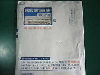 毎年この頃になると、(申し込んである、)確定申告用紙が送られて来る。(図1)