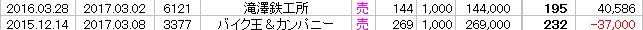 懸案だった「バイク王&カンパニー(3377)」1、000株(¥232で)を「滝澤鉄工所(6121)」1,000株(¥195で)との“抱き合わせ”で処分売りした。(図1)