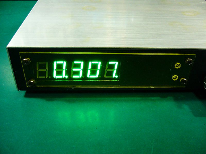 "周波数表示"には、既製品の「8桁表示カウンタ」を使ったが、KHz未満の3桁表示が邪魔なのと、発振器の「出力レベル表示2桁|Dummy:signal level」が欲しいな!という思いで、間に「マスク用黒紙」を挟んで、それらしい表示面にしてみた。下位2桁は、今は無効。