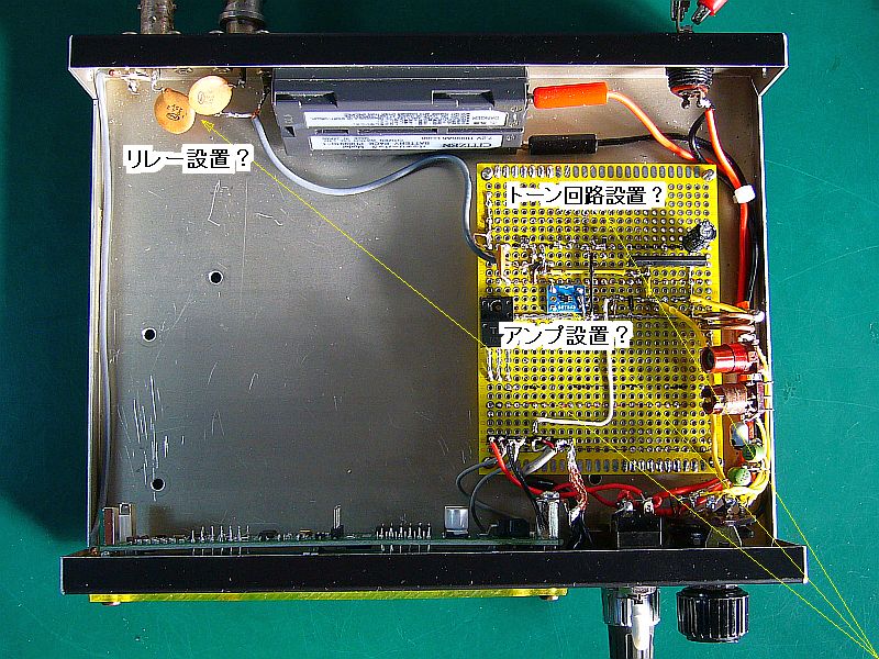実は、"信号の流れ"を"左から右へ"としたかったのだが、生憎、スイッチやコイルの位置関係から、逆にせざるを得なかった。(まぁ、後ろ側から見れば、左から右への流れにはなるんだが)