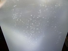 レンズ・シートの汚れは、自然増殖したカビの一種でしょうが、あちらこちらに散らばっていますね。でも、シート材を変質させるところまでは行ってない!...かな?