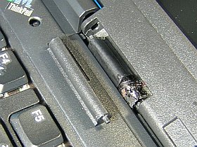 キーボードを外せばよい事に、やっと気が付いて、キーボードを抉じ開け始めたのですが、うっかりスティックポインタ用の「ホイール・ボタン」を、力任せに引っ張ったら、ベリッと剥がれてしまいました。f(T.T; (まぁ、あまり支障は無さそうですが、気分は少し曇りマーク)