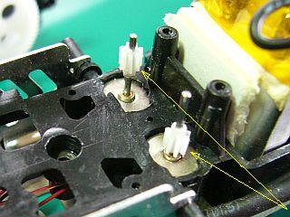 このIRCヘリ[1095B]赤色は、元々(飛ばない)ジャンク品として買って、調べたら「小ギア」が空回りしていたもの。(左写真)